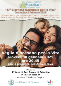 Giovedì 30 gennaio 2025 alle ore 20.45 nella parrocchia San Rocco di Principe si svolge la Veglia diocesana presieduta dall’Arcivescovo.