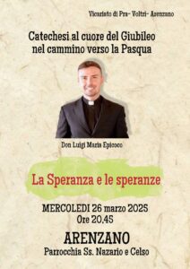 25 Febbraio 2025News Mercoledì 26 marzo 2025 Don Luigi Maria Epicoco ad Arenzano Mercoledì 26 marzo alle ore 20.45 nella parrocchia SS. Nazario e Celso di Arenzano incontro sul tema “Catechesi al cuore del Giubileo nel cammino verso la Pasqua”. Relatore il teologo Don Luigi Maria Epicoco.